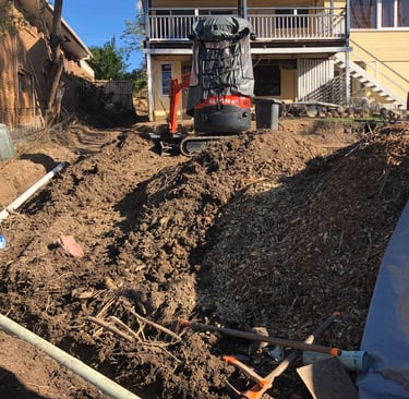 Early 2023 we started using our machinery to work on local Gapian's landscape projects. From cut & fill/ benching, turf preparation, concrete sleeper retainers under 1m and boulder retainers.